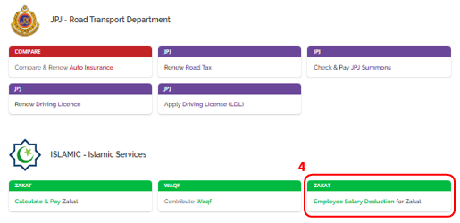 accessing and using the Salary Deduction service for Zakat Contribution through the MyEG